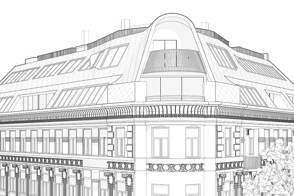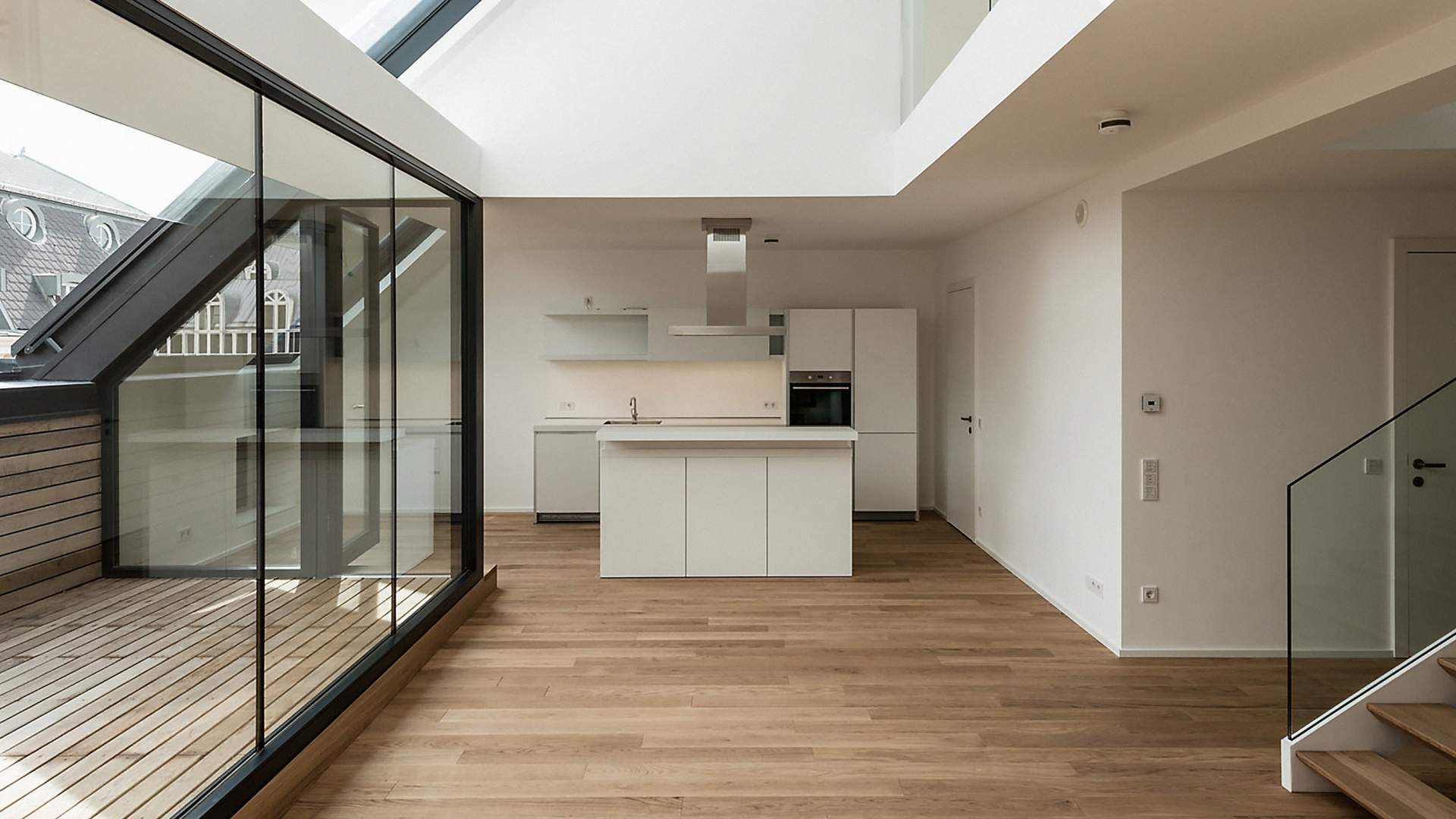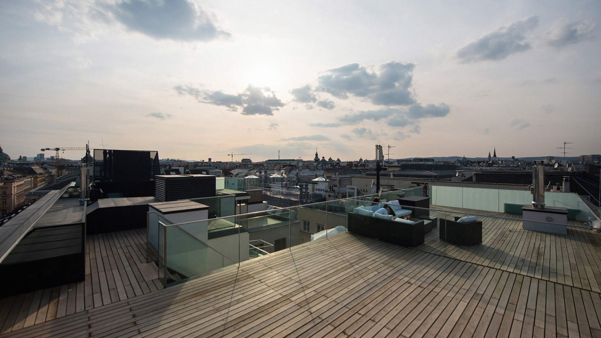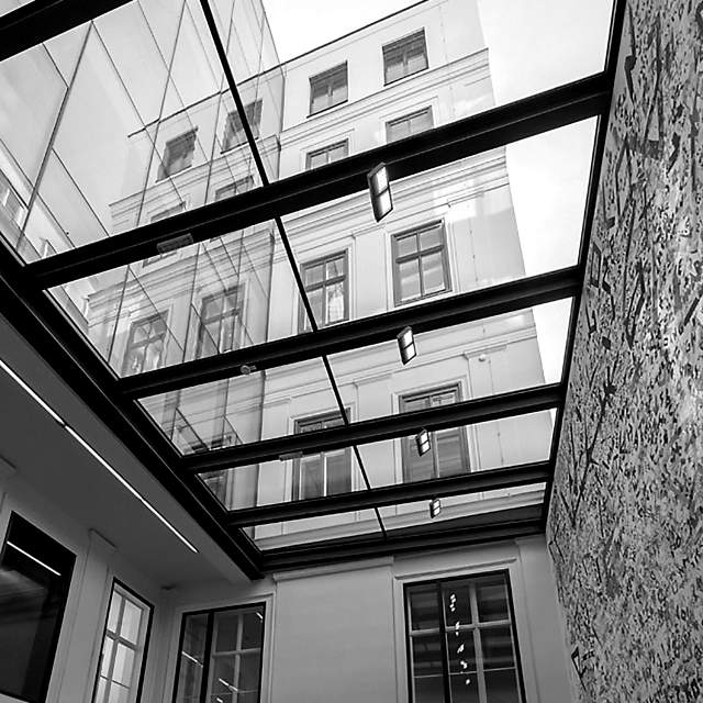 Ein offenes Foyer im Innenhof erschließt die reich ausgestalteten historischen Räume im Ringstraßenstil und die modernen, flexibel gestalteten Geschosse darüber. Diese bieten innovative Büros und im neuen Dachgeschoss lichtdurchflutete Maisonetten mit Terrassen und Sonnendecks.