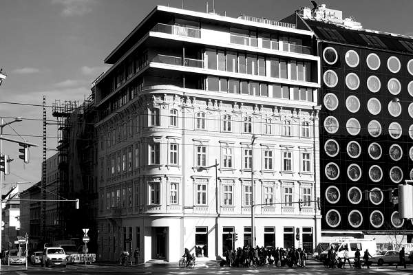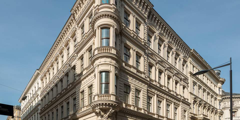 Das Palais Schwab in der Wiener Weihburggasse, 1871 von Wilhelm Stiassny erbaut, kombiniert denkmalgeschützte Restaurierung mit moderner Architektur. Historische Fassaden und Fenster wurden originalgetreu rekonstruiert.